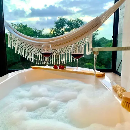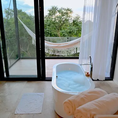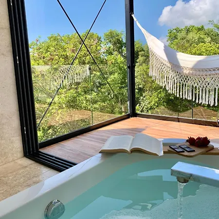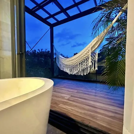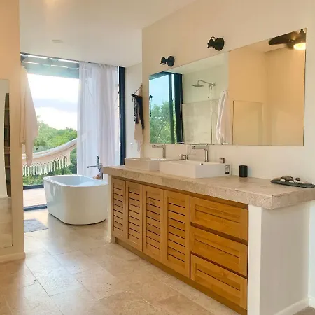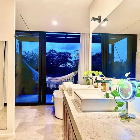 Localizada 6 km de Xavage Park by Xcaret, a Glass Jungle Villa With Amazing Green Views -10 Min Dt Playa del Carmen dispõe de piscina privada, de jacuzzi e banheira quente, garantindo uma estadia relaxante.